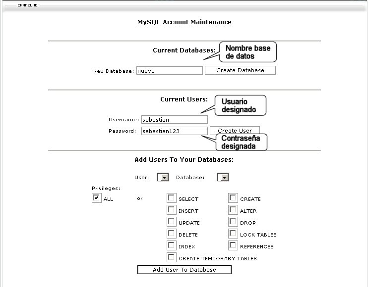 Usted debe llenar los campos, creando tambien un usuario y su clave para administrar la base de datos.