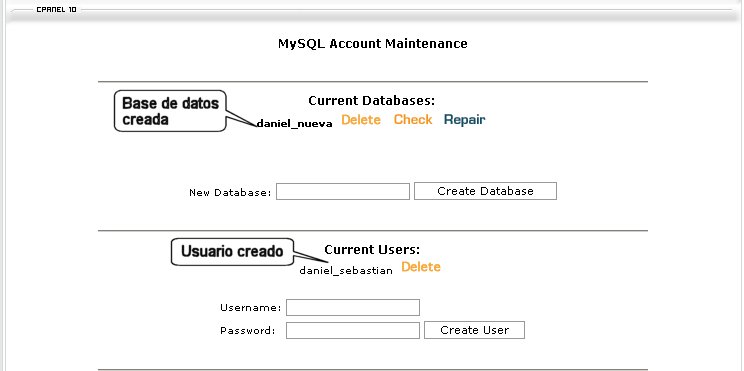 Una vez creada la base de datos y el usuario, le aparecera la siguiente pagina.